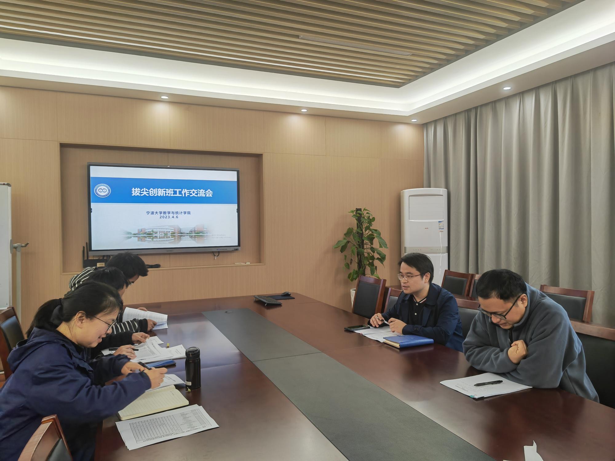 为关注数学与应用数学(拔尖人才创新班)学生的成长,提升拔尖班学风班风建设,4月6日中午,学院召开拔尖人才创新班工作交流会。会议由教学副院长徐松主持,应用数学系主任沃维丰、副系主任黎泽,数学系副系主任包宏伟,拔尖班导师周贵松,及教务办、学工办相关教师参加会议。