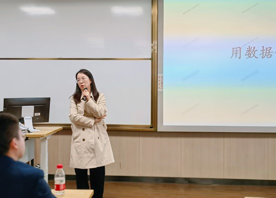 然后,傅娇儿经理作为平安数据项目组负责人则从自身多年工作感悟出发进行经验分享,主题是“用数据创造价值”。她强调要用数据取代传统经验主义,并引导同学们思考如何搭建营销人货场,数据分析完之后通过何种方式支撑结果。傅经理指出,由于学校内教学与自我学习所用的数据与企业实际经营中所用到的数据,数量级完全不一样,有些传统的数据统计工具在许多场景不再适用,在工作岗位上更需要理论与实际的结合。工作实务中首先需要了解核心业务流程,之后才用工具来分析,做决策的支撑工具。作为数据工作者,要为前线业务人员及管理决策人员提供有力武器,做数据赋能业务的攻坚者。她建议同学们在平时就练就好功夫,助力今后就业能快速适应。