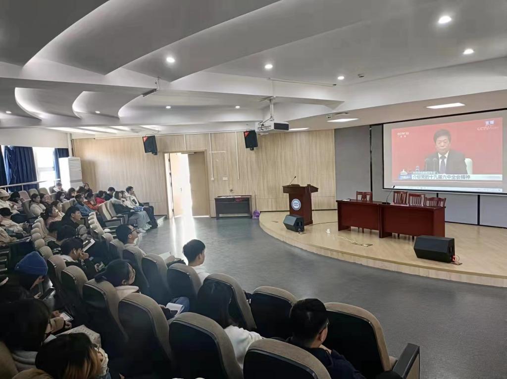 师生准时在包玉书9号楼113报告厅组织集中观看直播,学习全会的精神。