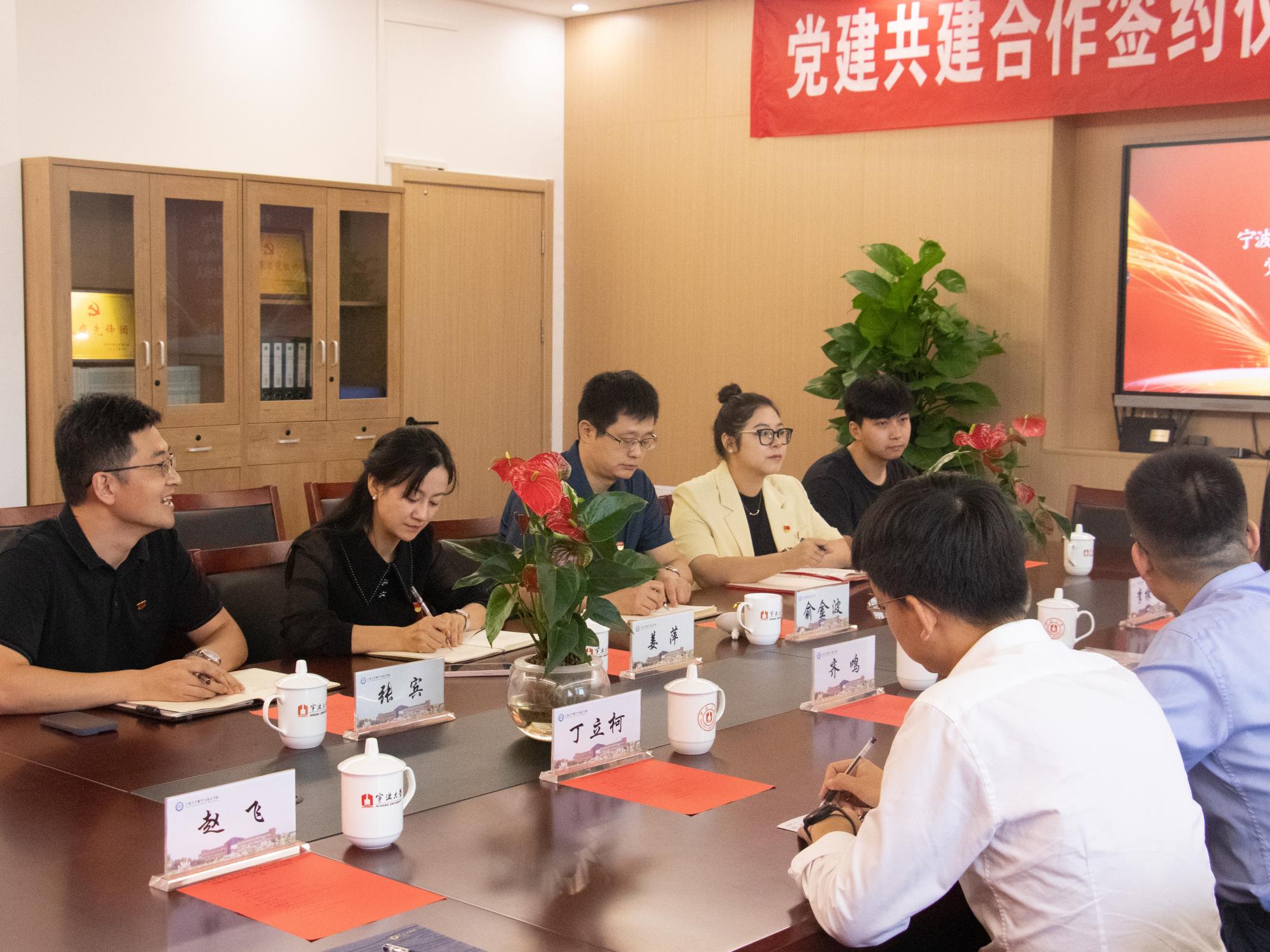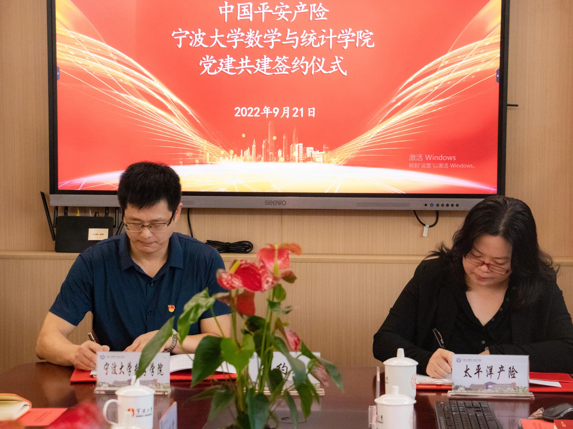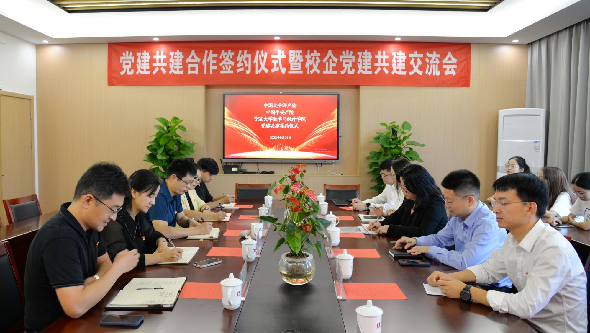为全面贯彻习近平新时代中国特色社会主义思想,深入落实新时代党的建设总要求,激发高校基层党组织活力,有效整合校企党建资源优势,促使双方在合作中优势互补、共同发展、实现双赢,9月21日上午,我院和太平洋产险、平安产险党建共建签约仪式暨党建共建交流会在包玉书科学楼9号楼218会议室隆重举行。中国太平洋产险宁波分公司党建工作部负责人汪蕾,中国平安产险宁波分公司党委委员、党办主任齐鸣,麻豆社