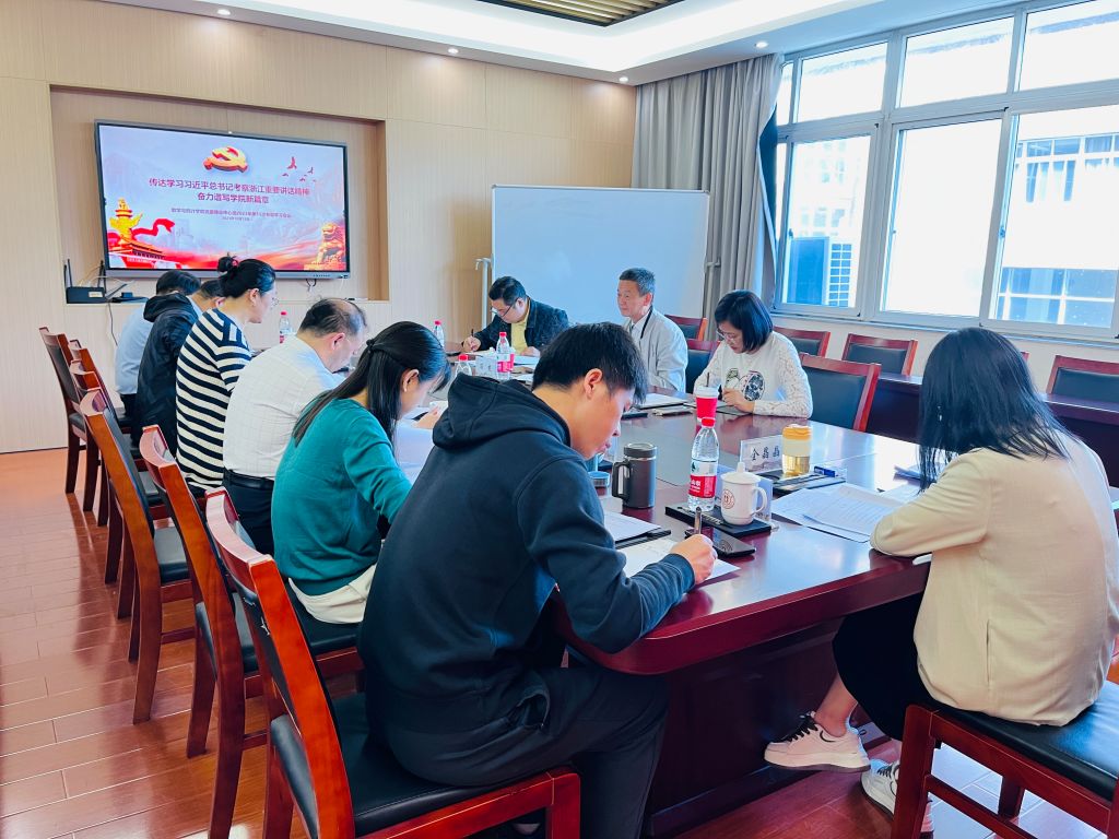 党委理论学习中心组举行2023年第15次集中学习会,就习近平总书记考察浙江重要讲话精神进行专题学习。院党委书记主持会议,校党委副书记冯杰一行代表校理论学习中心巡听旁听,学院党政领导班子全体成员参会。