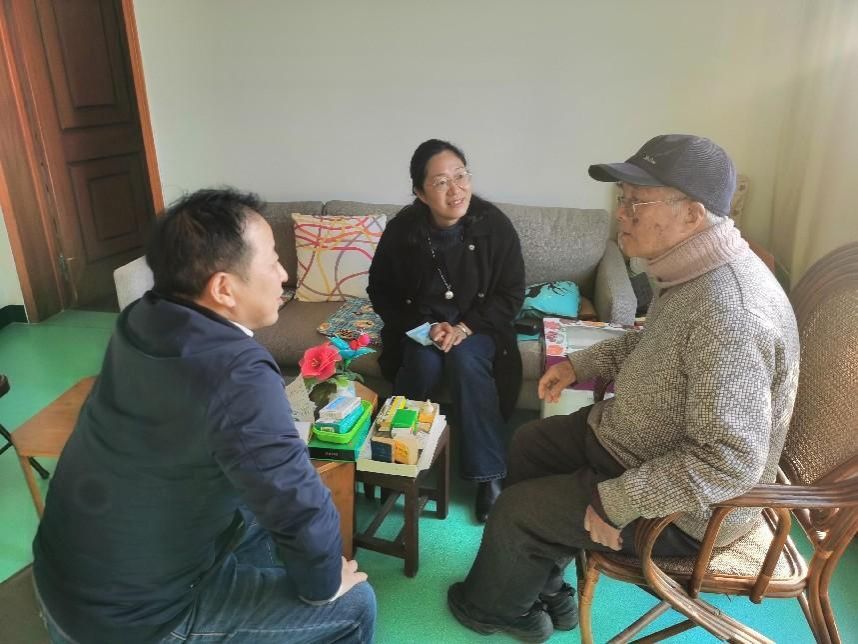 霍妍详细了解了三位退休老教师的身体情况和生活状况,对老教师们精气神十足的生活状态感到欣慰,并将慰问品送到他们手中。随后向老教师们介绍了学院发展情况及近期取得的成绩,感谢老教师们对学院发展所做的贡献以及对学院工作的关心与支持,叮嘱他们多保重身体并诚挚地邀请老教师们常回学院看看,继续为学校的发展建言献策。