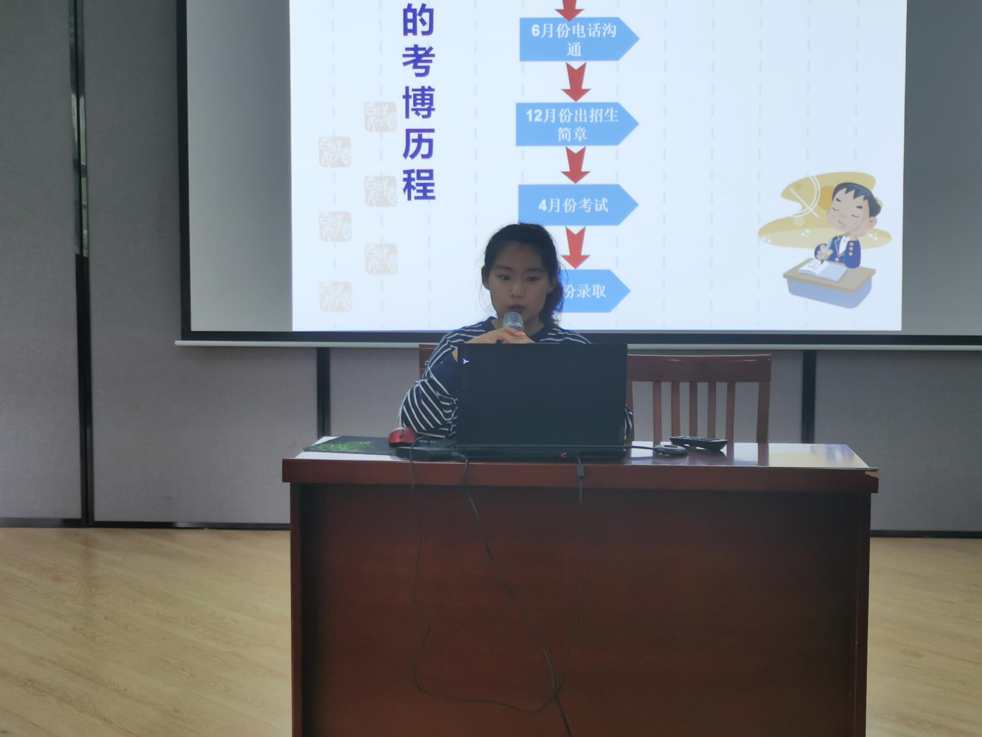 王政(己上岸中国海洋大学)以考博为中心,回顾自己的考博历程。她提出“三问三选”建议,三问:问读博目的、问什么样的博士满足这个目的、问苦闷的博士生活能否忍受;三选:选学校、选方向、选导师。这些前期的准备工作都缺一不可,只有下定决心才能一往无前。对于考博备战相关事项,从联系导师到查询资料,以及最后的报考复习,王政学姐都精心准备并一一分析。同时,鼓励有考博想法的同学们尽早确定目标,设计合理的复习计划,克服自身困难,挑战自我。