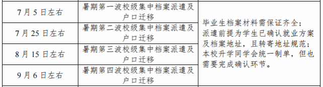 3. 档案派遣时间。春季毕业生完成就业方案确认后即可组织分批派档。6月、7月毕业的同学预计于7月初组织档案派遣,具体档案派遣进程由侯老师负责,联系电话18858250104。请各位同学提前一周确认就业方案,学院将按照学校进度分批组织派档,勿紧急要求派档。