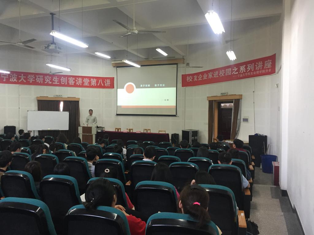 沈锋校友现任宁波和谐节能科技股份有限公司董事长兼总经理,为进一步推动我校创新创业人才工作,营造在校学生成才的创新创业氛围,引导和帮助学生树立创新意识,培养创新能力、锻炼创业精神,理学院校友会特此邀请理学院优秀校友沈锋为学院师生开展有关创业方面的讲座。