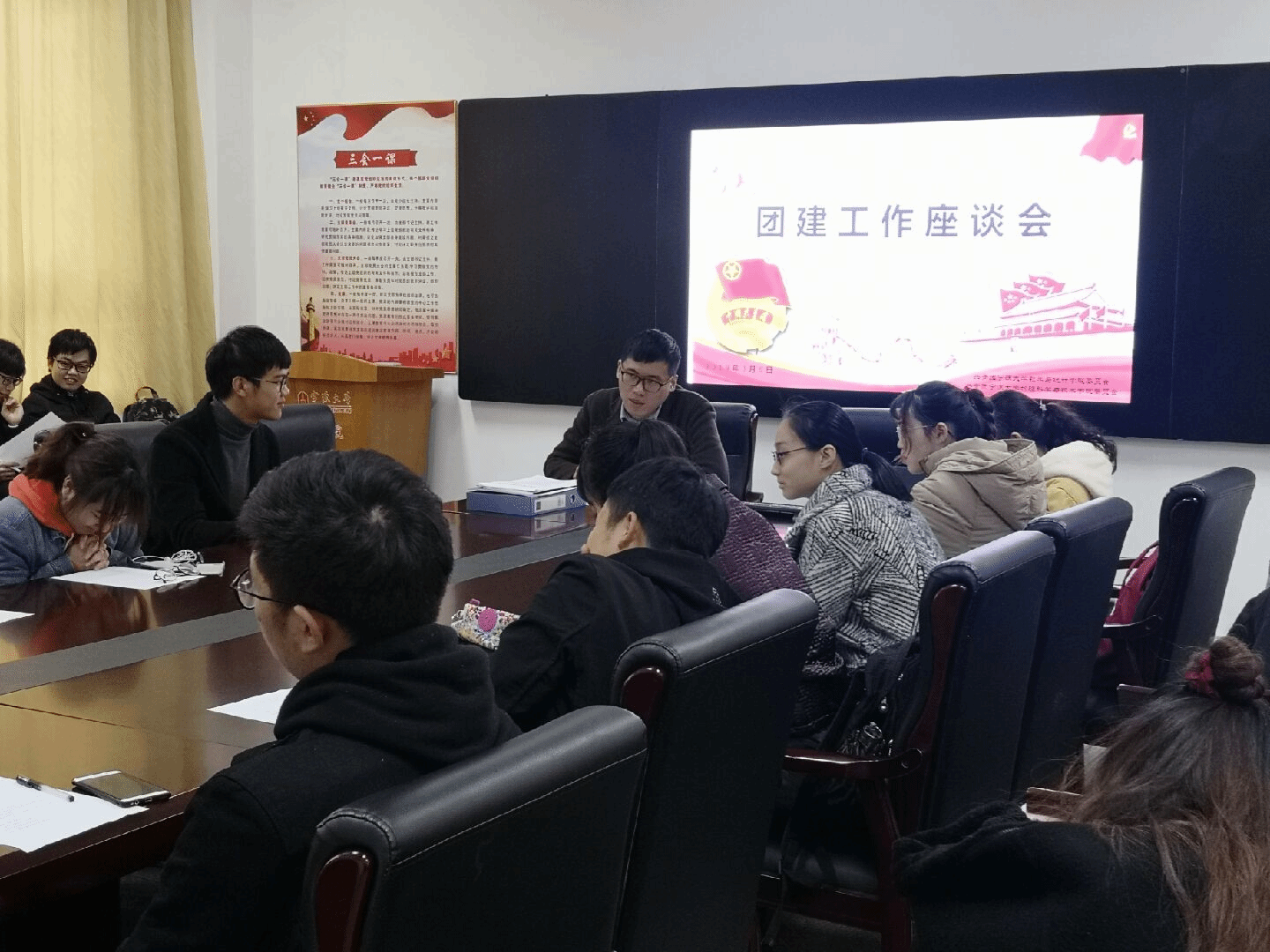 3月6日下午,我院各班团支书及团员、非团员代表在龙赛理科楼北楼116会议室举行团建工作座谈会,会议由学院团委冯程老师主持,共有30余名青年学子参加座谈会。