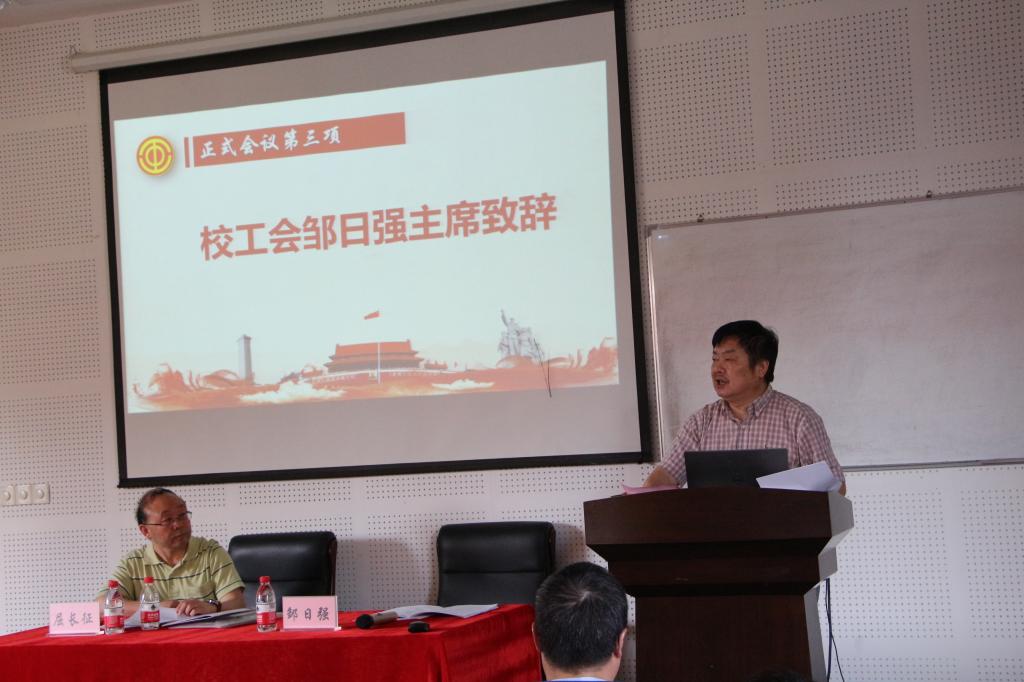 第一次教职工暨工会会员代表大会在龙赛理科楼311报告厅顺利召开。会议应到会代表39名,实到34名。校工会主席邹日强出席会议并讲话,会议由院党委书记俞金波主持。