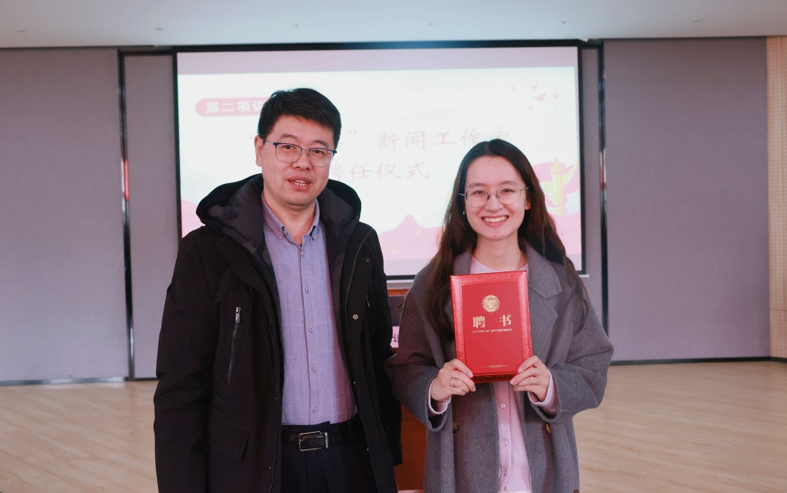随后,大会进行了聘任仪式。党委宣传部副部长、学院党委书记、副书记分别为工作室指导老师及学生记者颁发聘书。