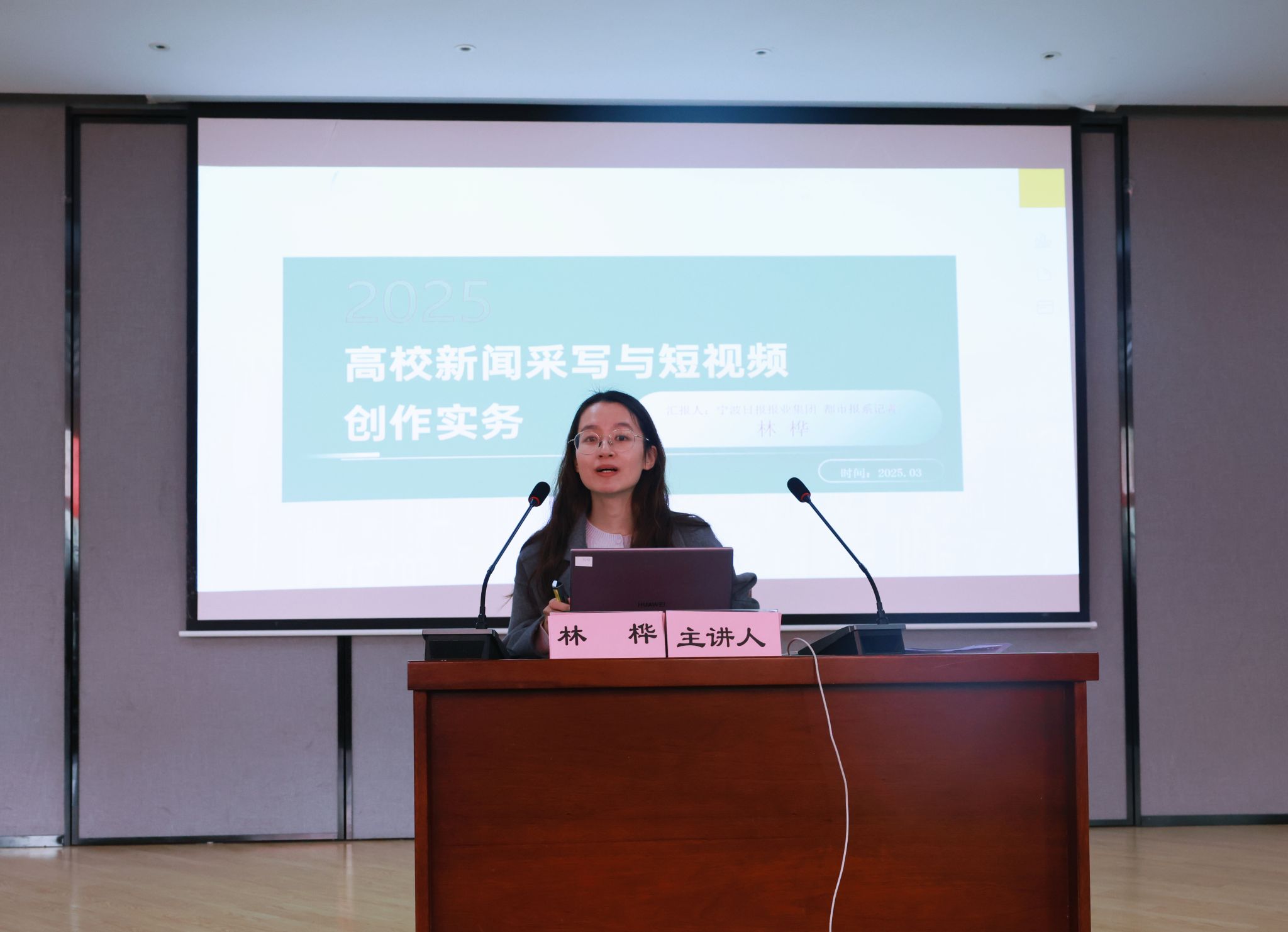 为了进一步提升工作室成员的新闻素养和创作能力,大会邀请了媒体指导教师林烨为师生带来了一场题为《高校新闻采写与短视频创作实务》的讲座。她从“如何发现高校新闻线索”“高校新闻写作技巧”“高校新闻短视频创作指南”三个方面进行了详细分享,为大家提供了宝贵的业务指导和实践建议。