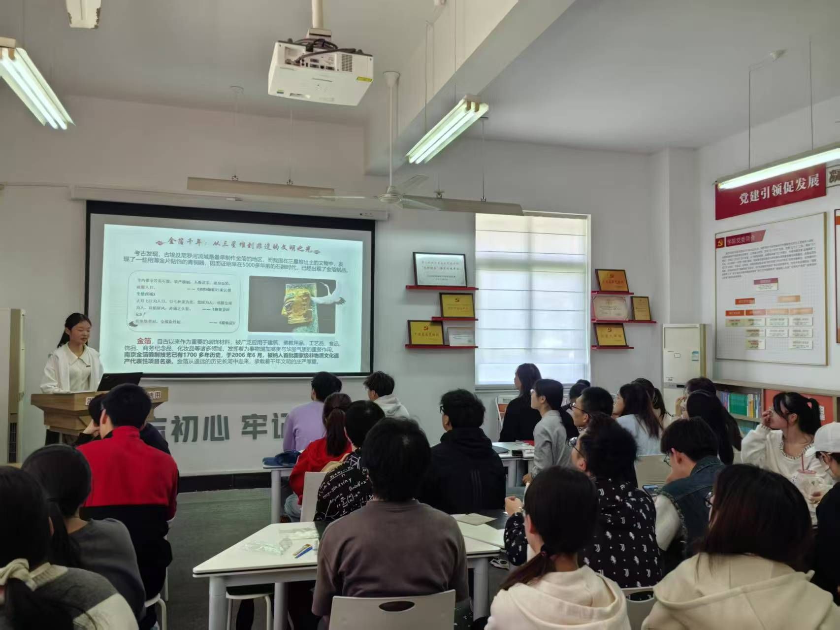 本次“匠心绘初心 金箔映党辉”主题党日活动以南京金箔非遗技艺为载体,与党性教育深度融合,通过微课宣讲、金箔工艺实践、廉洁主题创作等环节,以匠心传承诠释清廉初心,以文化浸润点亮信仰之光,让党性教育在非遗之美中焕发新活力。
