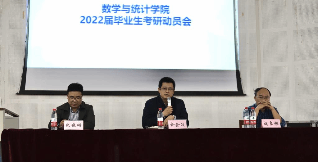 2022届毕业生考研动员大会在龙赛理科楼报告厅顺利举行。数院党委书记俞金波老师,副院长胡良根老师,院长助理包晓明老师,各系主任,各班主任及2018级全体同学参加本次会议,会议由包晓明老师主持。