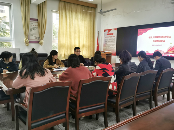 4月12日,数学学院召开2021年度行政教辅工作会议,院党委书记俞金波、副书记姜萍及所有行政教辅人员参加。