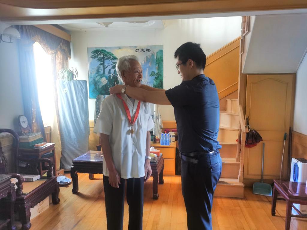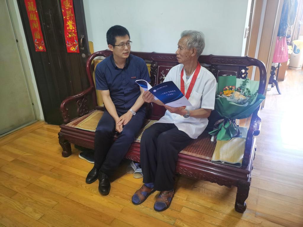 623日下午,数学学院党委书记俞金波携教师代表一行前往学院老党员、退休老教师蒋长浩老师家中走访慰问,为其颁发了“光荣在党50年”纪念章。