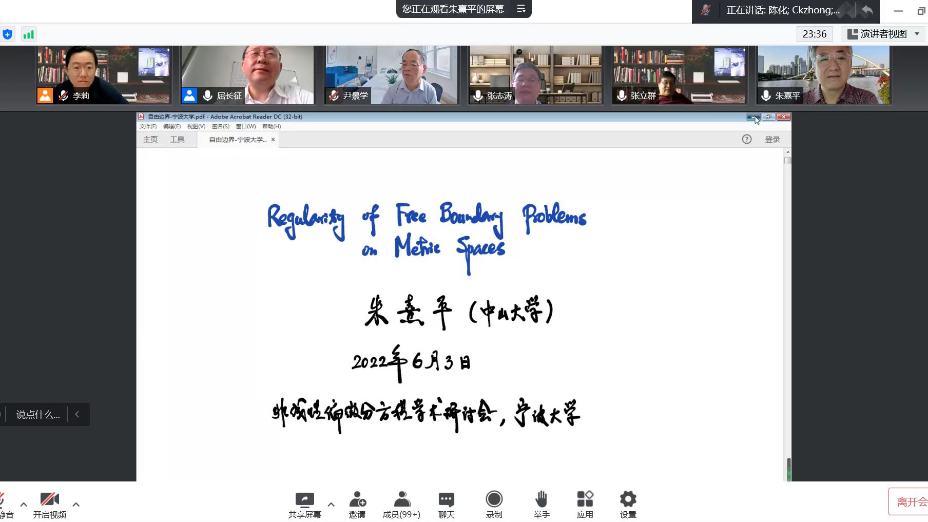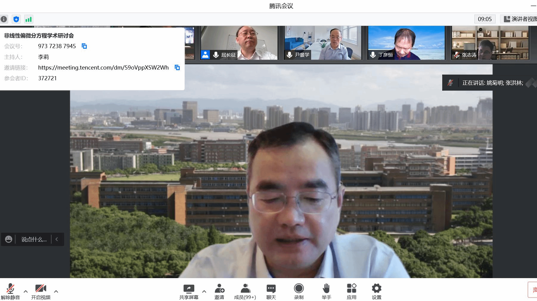 研讨会采用腾讯会议线上学术报告的形式,来自中国科学院、清华大学、北京大学、中山大学、上海交通大学、中国科学技术大学、西安交通大学、华中师范大学、首都师范大学等单位的近20名国内外专家围绕非线性方程领域的前沿热点问题及最新研究发展作了邀请报告,充分展现我国非线性偏微分方程领域的新理论、新成果、新动态,引发参会学者们的热烈探讨与广泛交流。