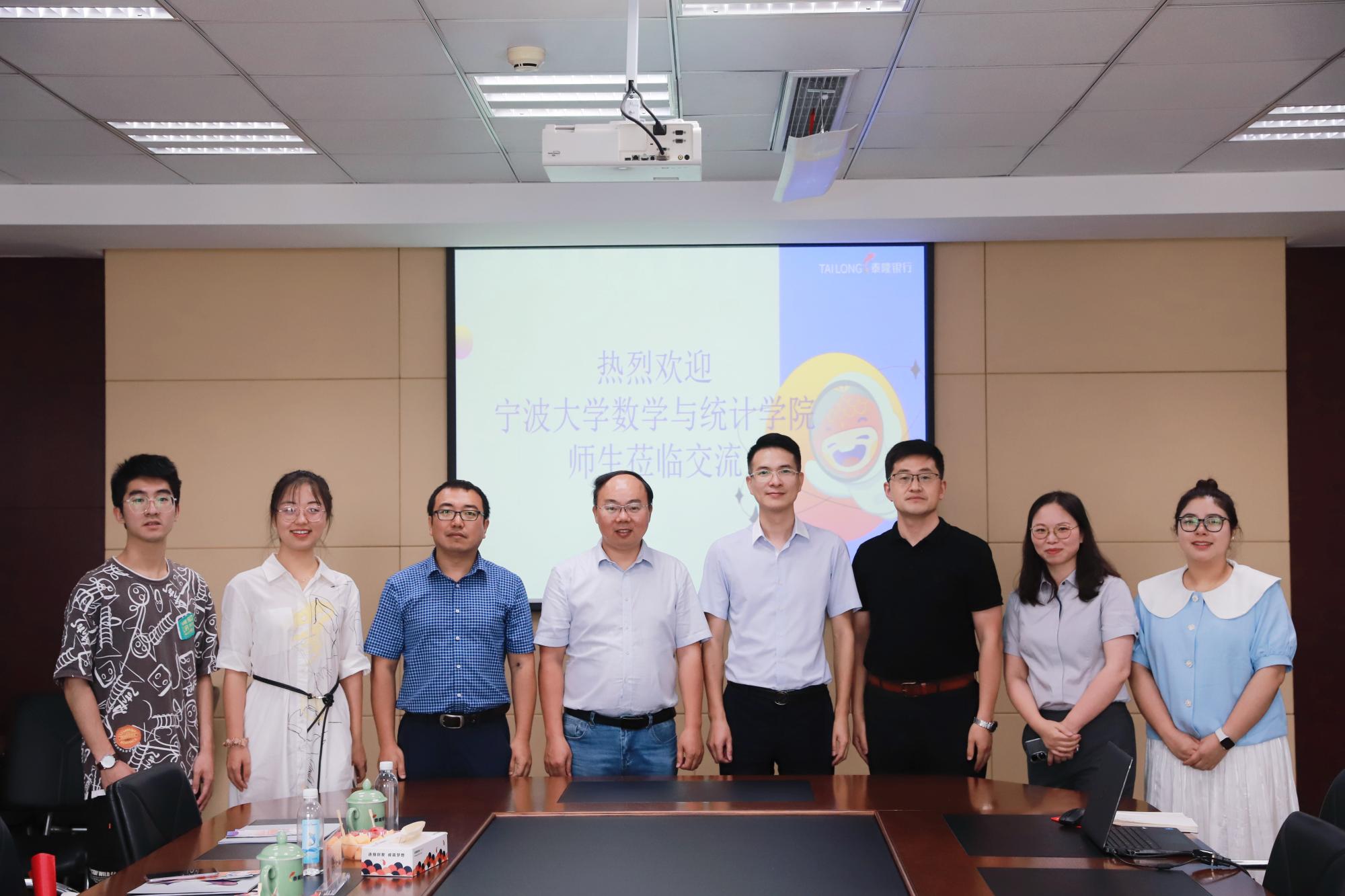 和企业协同育人机制,7月1日上午,数学学院副院长胡良根老师一行赴泰隆银行宁波分行访企拓岗,副行长冯贻昌、经理叶卫卫出席座谈交流。