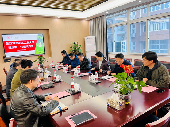322日,浙江工业大学理学院党委书记朱杭军、副院长朱海燕,办公室主任雷哲敏、数学系主任金永阳、数学学科负责人沈守枫及合作办主任陈磊一行到我院调研交流。特聘院长屈长征、学院党委书记霍妍、副院长陈传强、副院长徐松等人参会。会议由院党委书记霍妍主持。