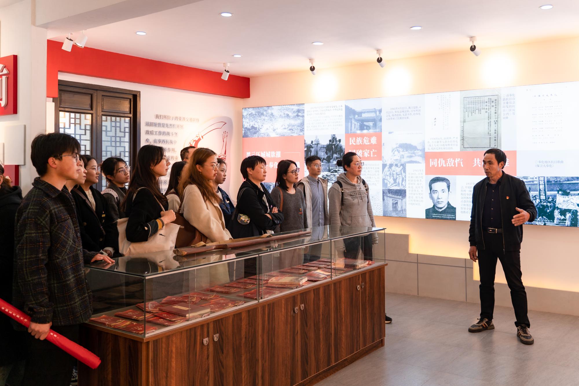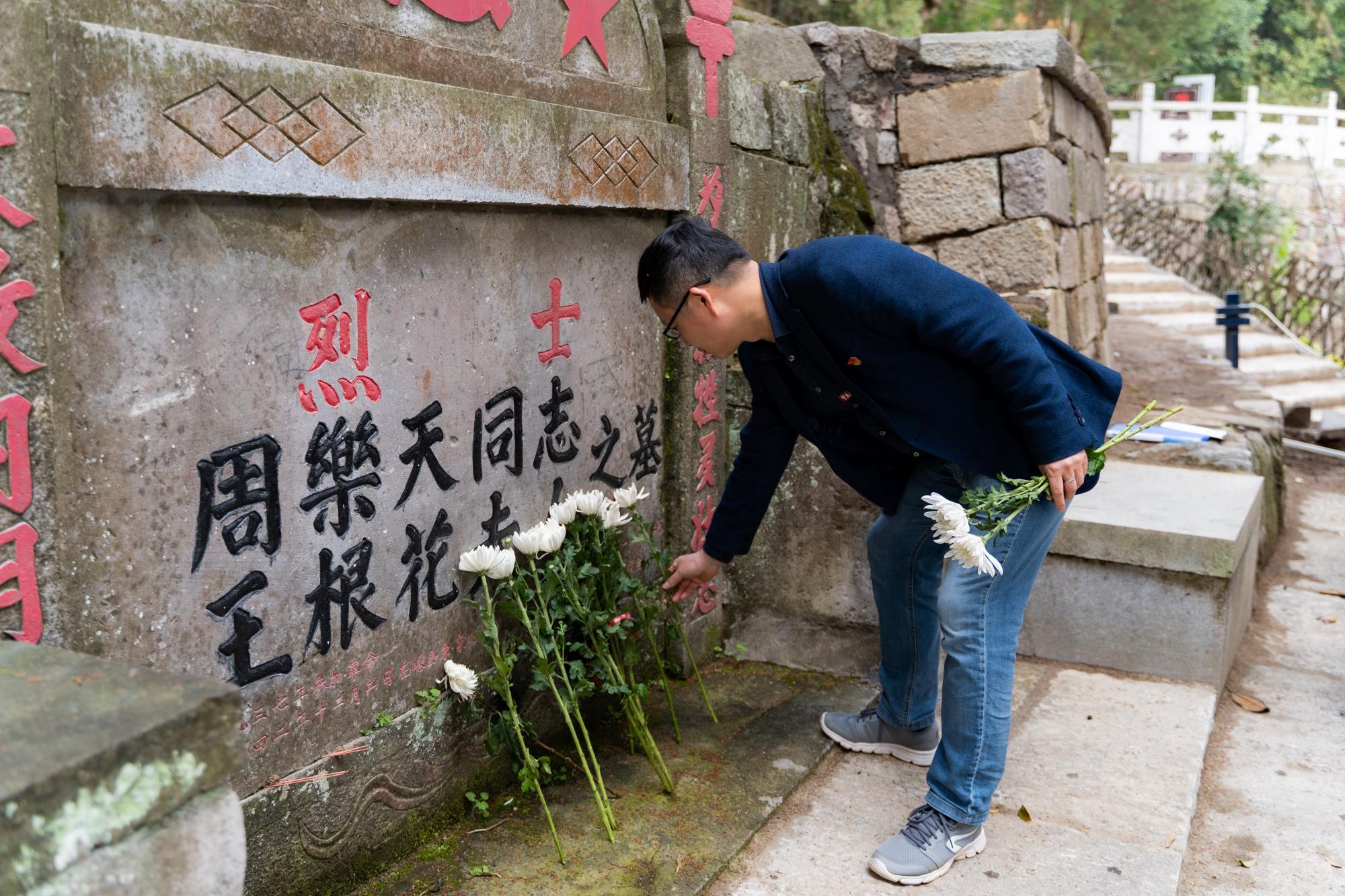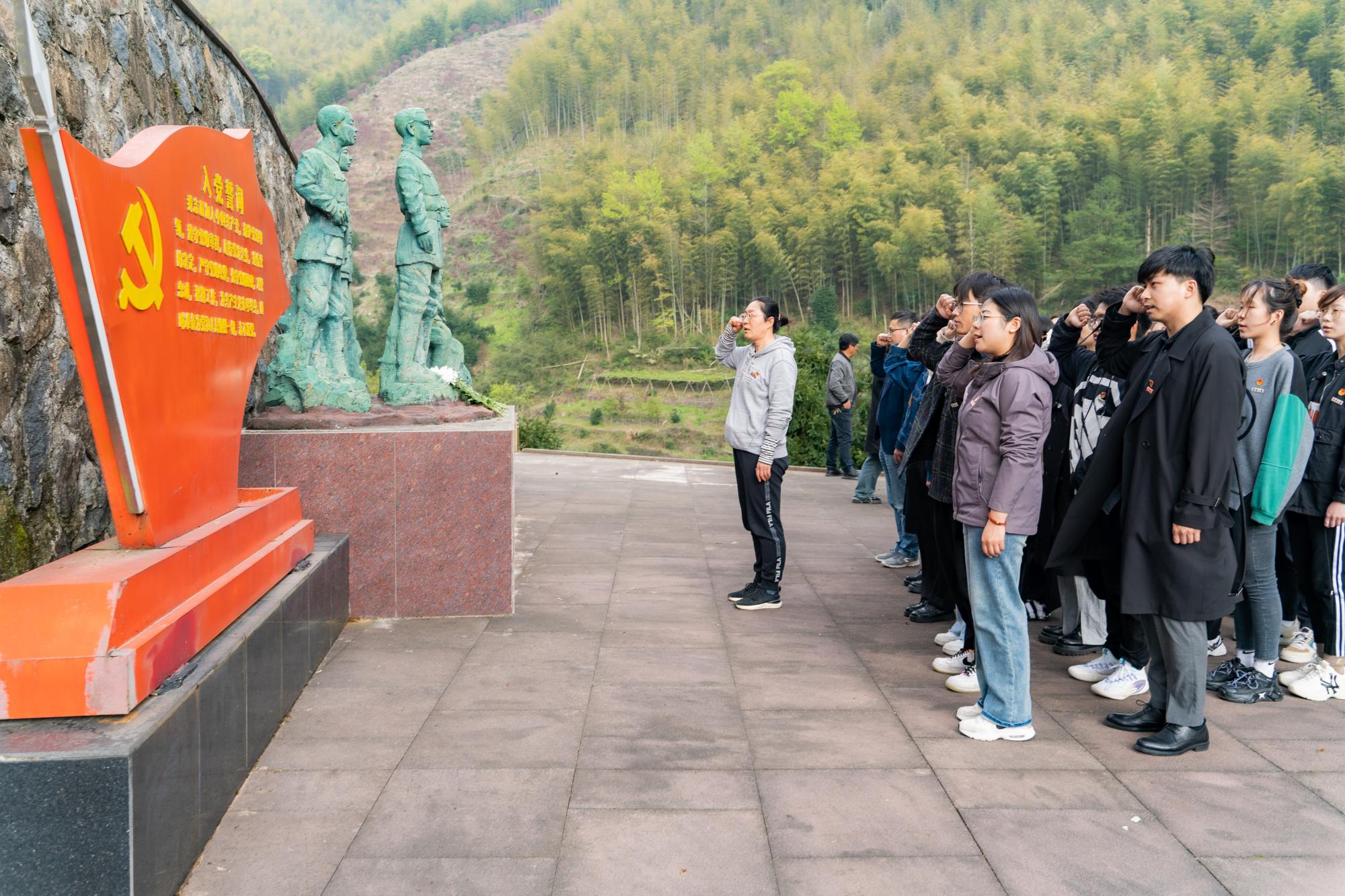 在溪口镇壶潭村,师生党员们参观壶谭革命烈士纪念馆,深入了解革命先烈们的英勇抗争事迹,重温入党誓词再次坚定政治理想信念。并前往烈士墓园,全体师生代表手持黄白菊花,低头静立,向为革命事业前赴后继、英勇献身的革命烈士默哀。在祭扫仪式上,学院党委书记霍妍老师代表全体党员向三位烈士致悼词表达崇高的敬意。同时,也激励师生要继承并践行英雄精神,汲取前行力量,让青春在全面建设社会主义现代化的火热实践中绽放绚丽之花,从而无愧于时代、无愧于先烈。