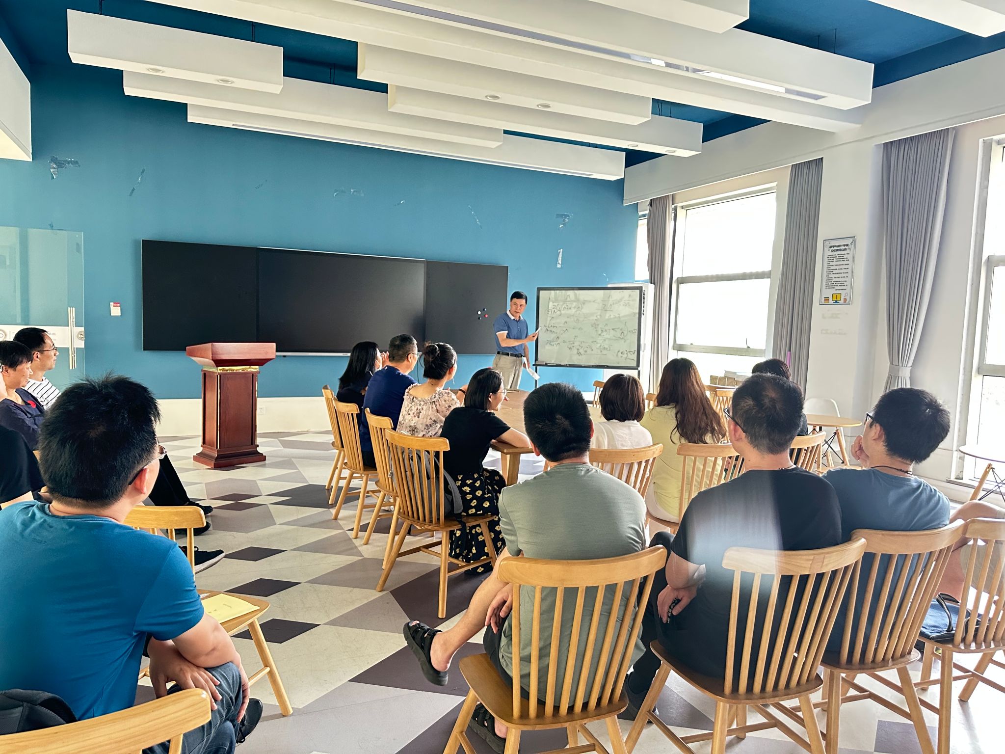 为提升学院广大青年教师课堂教学能力和水平,切实发挥课堂教学作为人才培养主渠道和主阵地的重要作用,6月29日下午,学院举行2023年第一期大学数学部教学沙龙活动暨第五期青年教师专题学习培训活动。此次活动以“如何上好新学期第一堂课”为主题,分为高等数学、线性代数、概率统计三个分会场,由教学经验丰富的资深教师担任主讲人,学院近60位老师参加。