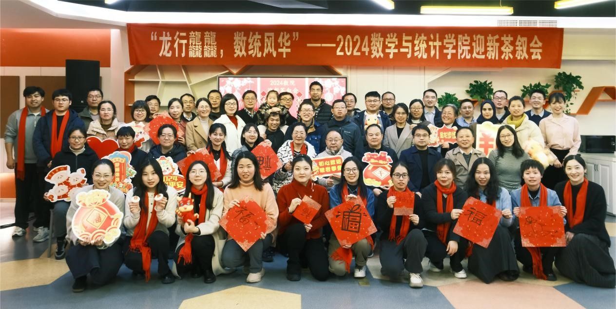 “龙行龘龘,数统风华”2024年迎新茶叙会在学院教工之家成功举办。学院领导、各系部门教师和校友会的众多成员欢聚一堂喜迎新年。