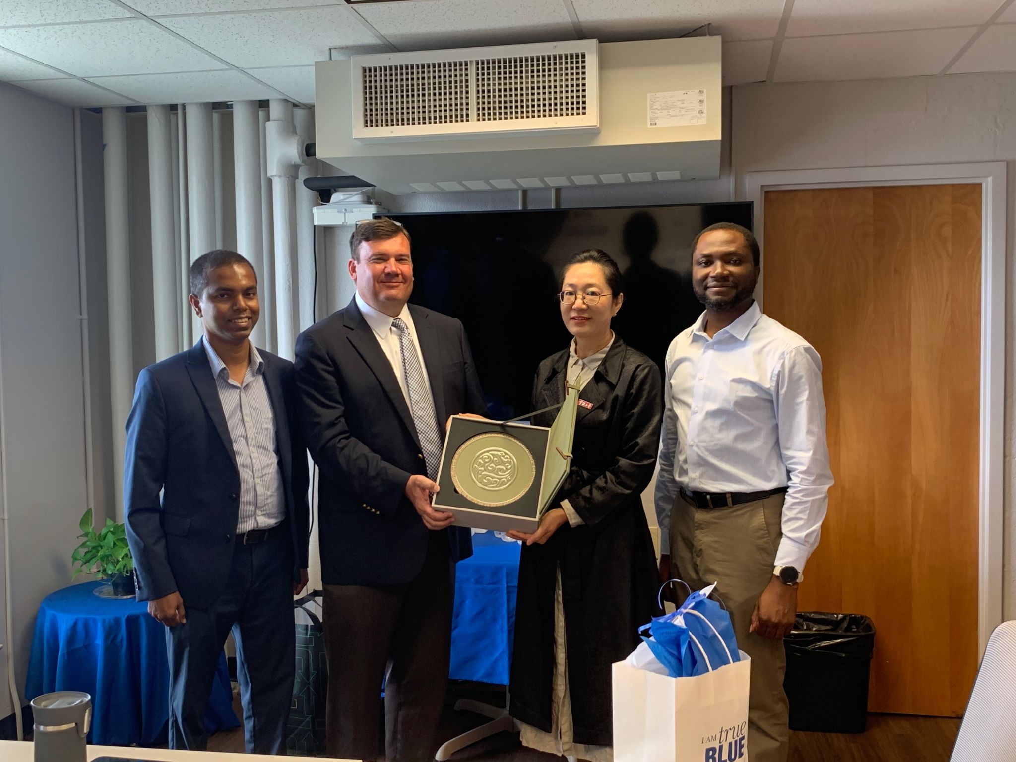 5月10日下午,代表团一行与留在中田纳西州立大学的部分学生进行座谈交流,周青了解学生在美的学习、生活和未来升学及就业等情况,勉励在美学子不断努力取得更好成绩。最后,周青向学生赠送宁大特色纪念品,充分展现了母校关怀。
