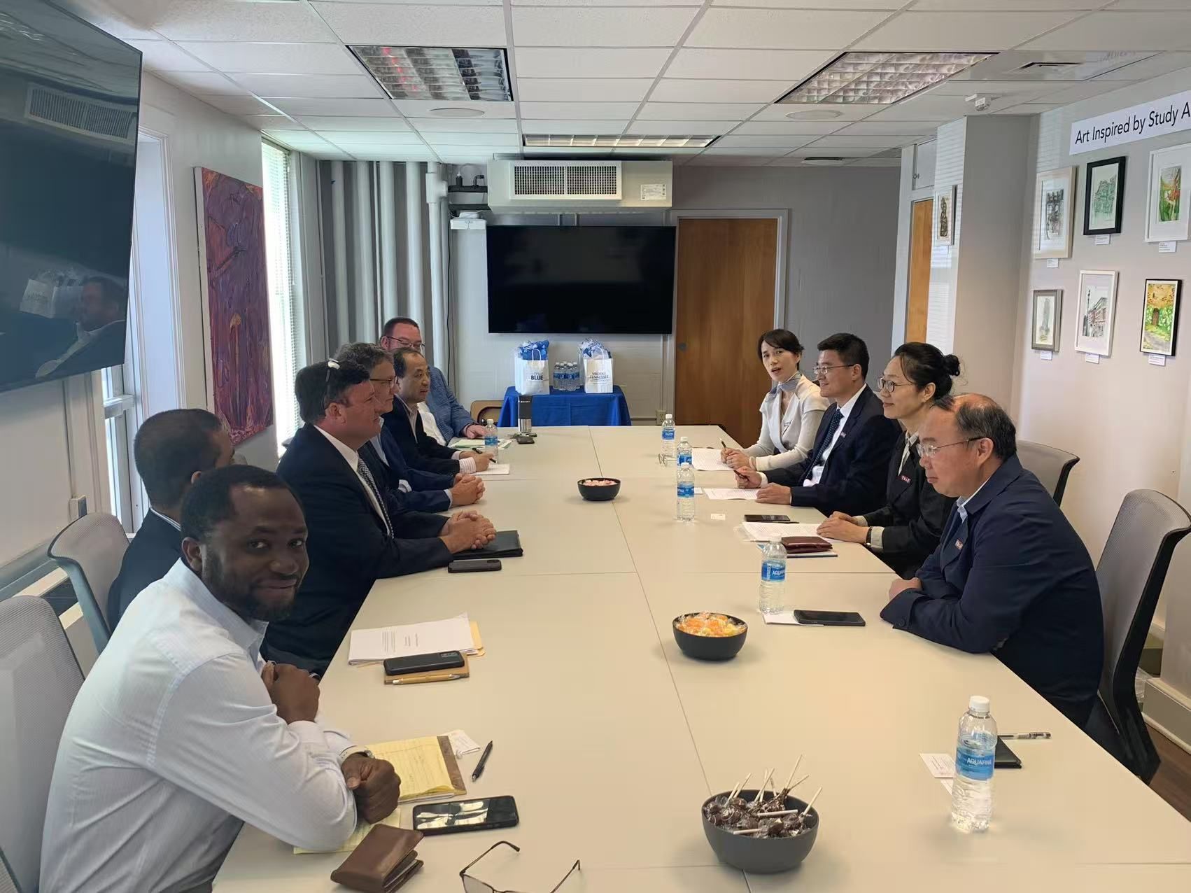 5月12日上午,美国中田纳西州立大学常务副校长Mark Byrnes,分管国际化的副校长Robert Summers、基础应用学院副院长Samuel Harun、数学系主任Chris Stephenson、精算中心代理主任Vajira Manathunga等会见了代表团一行。双方回顾了十三年来两校精算项目的人才培养成果,就建构常态化工作协作机制、建设精算项目品牌、拓展多维度合作空间等展开了充分的讨论与交流,共同谋划精算合作未来蓝图。代表团邀请美方教授通过来校讲座、短期授课、项目宣讲等方式,进一步推进两校交流互访。